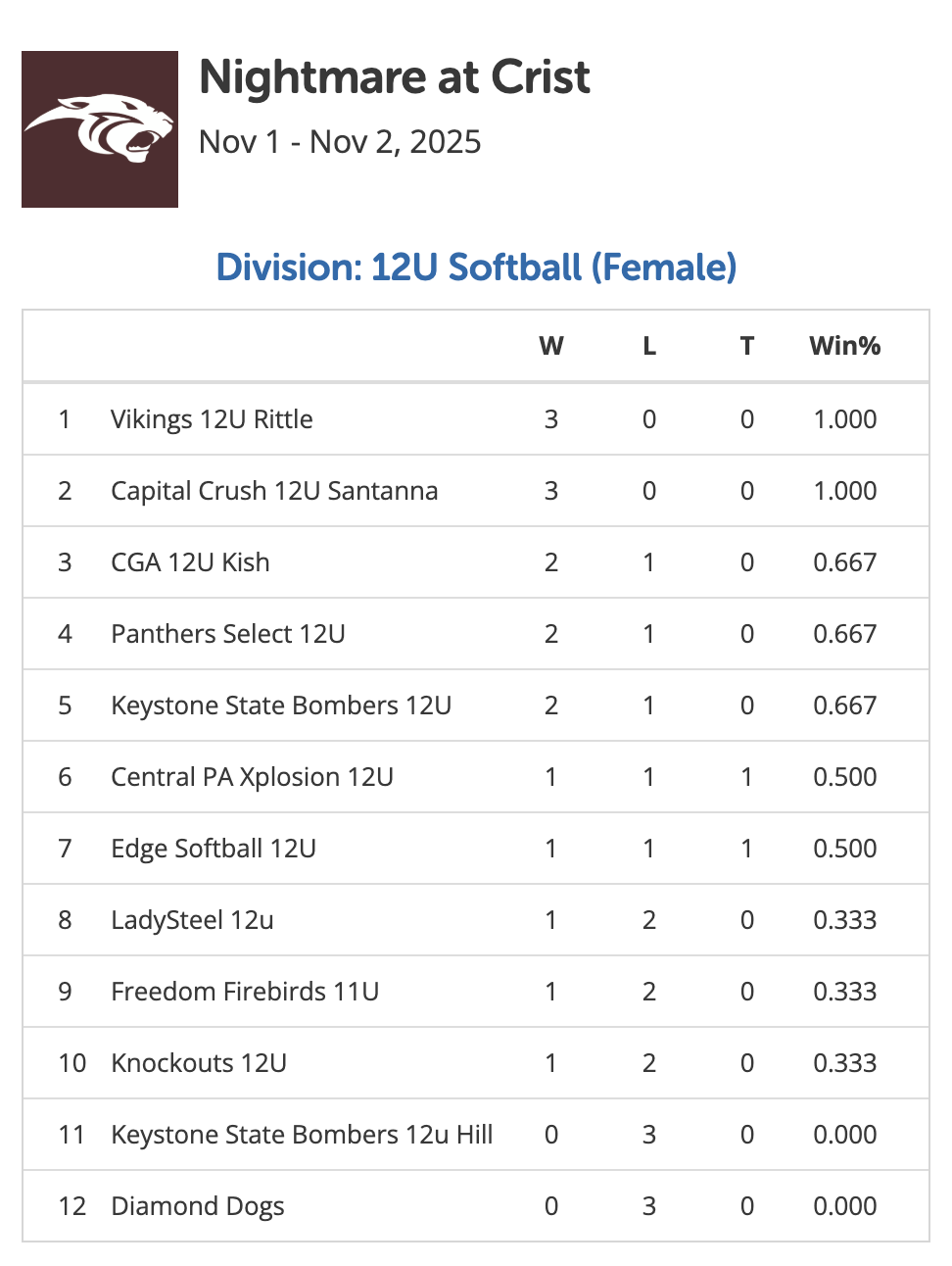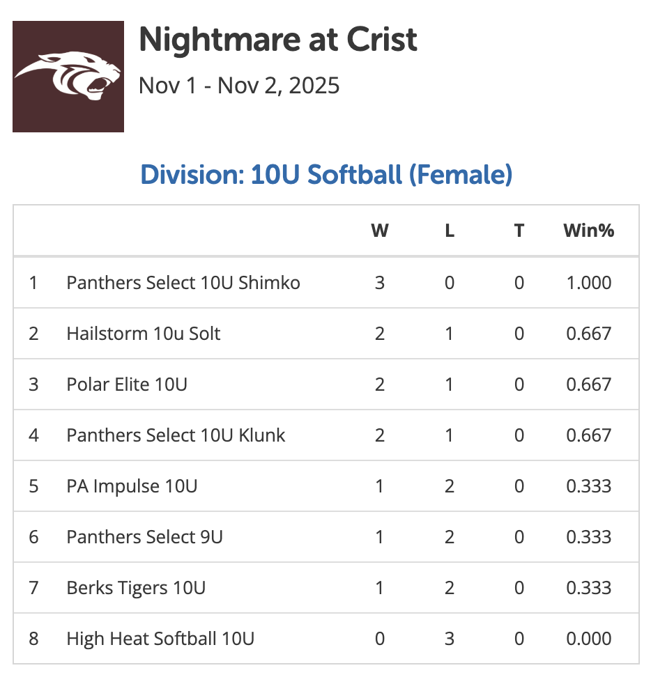 November 1-2, 2025 | Pool Play Standings | Championship Bracket
