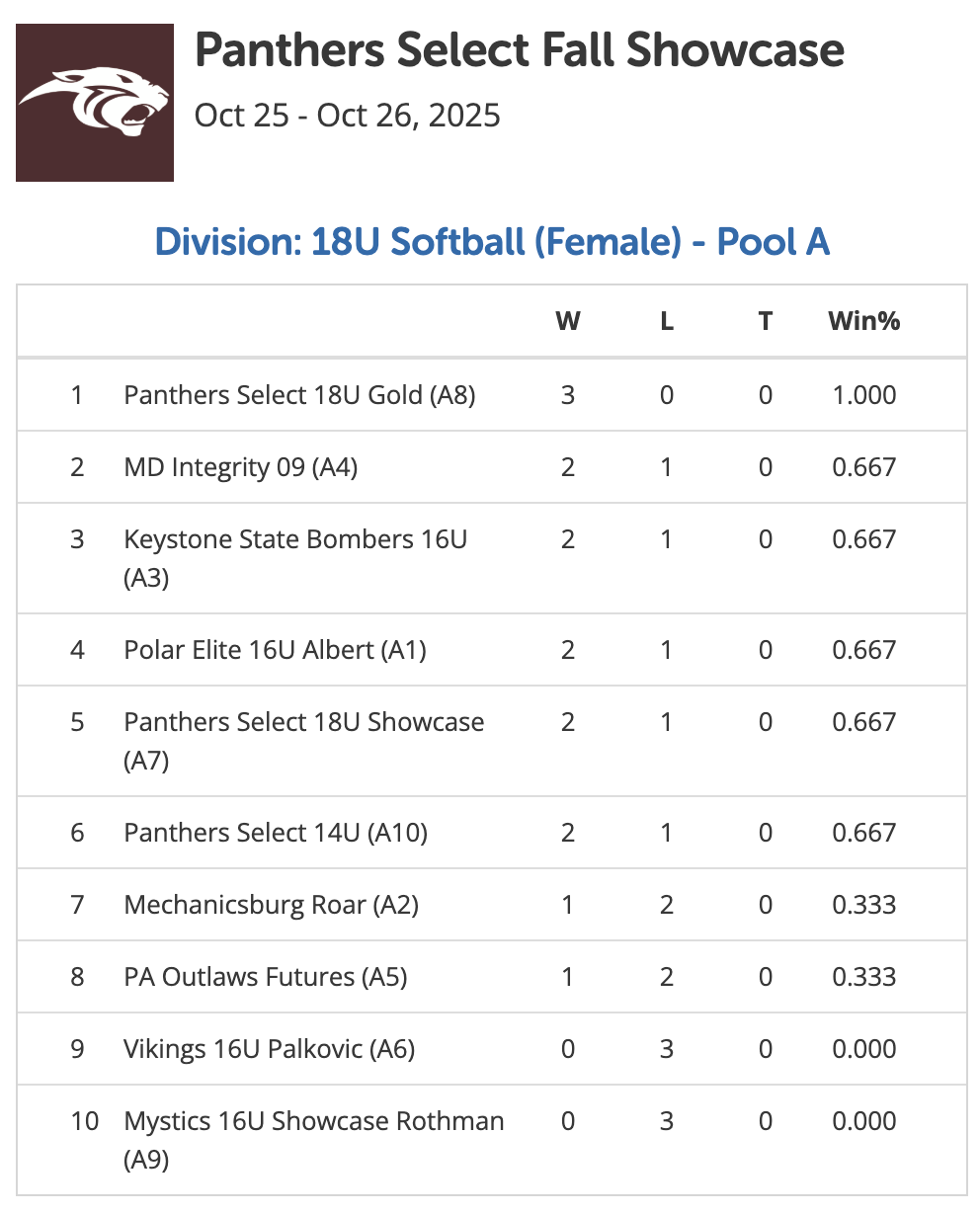 October 25-26, 2025 | Pool Play Standings | Championship Bracket