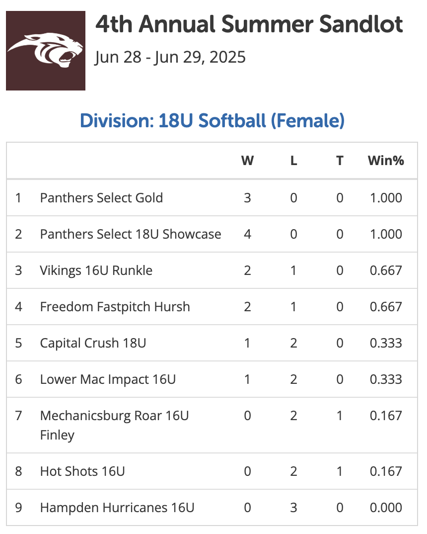 3rd Annual Summer Showcase Invitational Champion (Panthers Select 18U Gold)