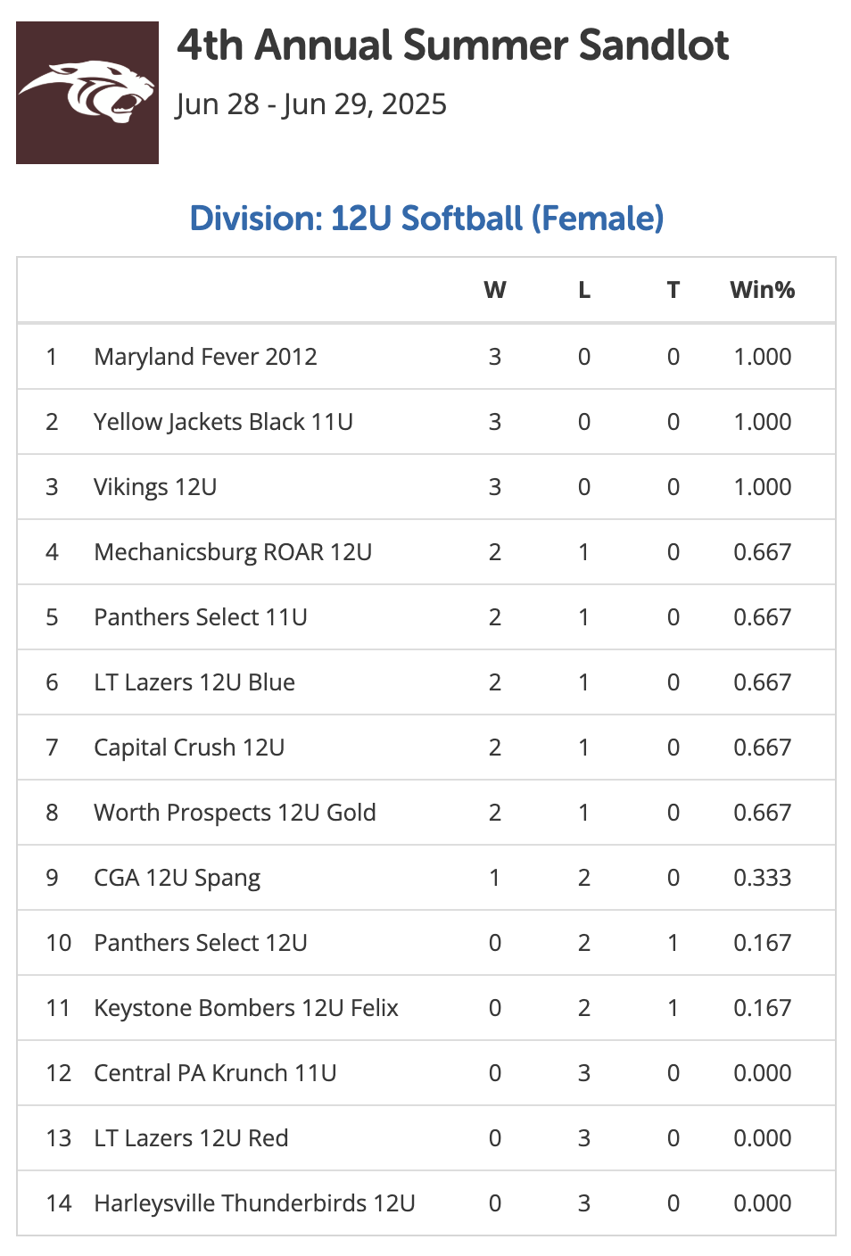 June 28-29, 2025 | Pool Play Standings | Championship Bracket