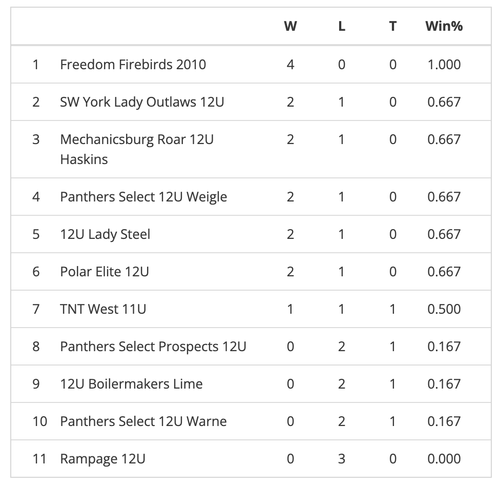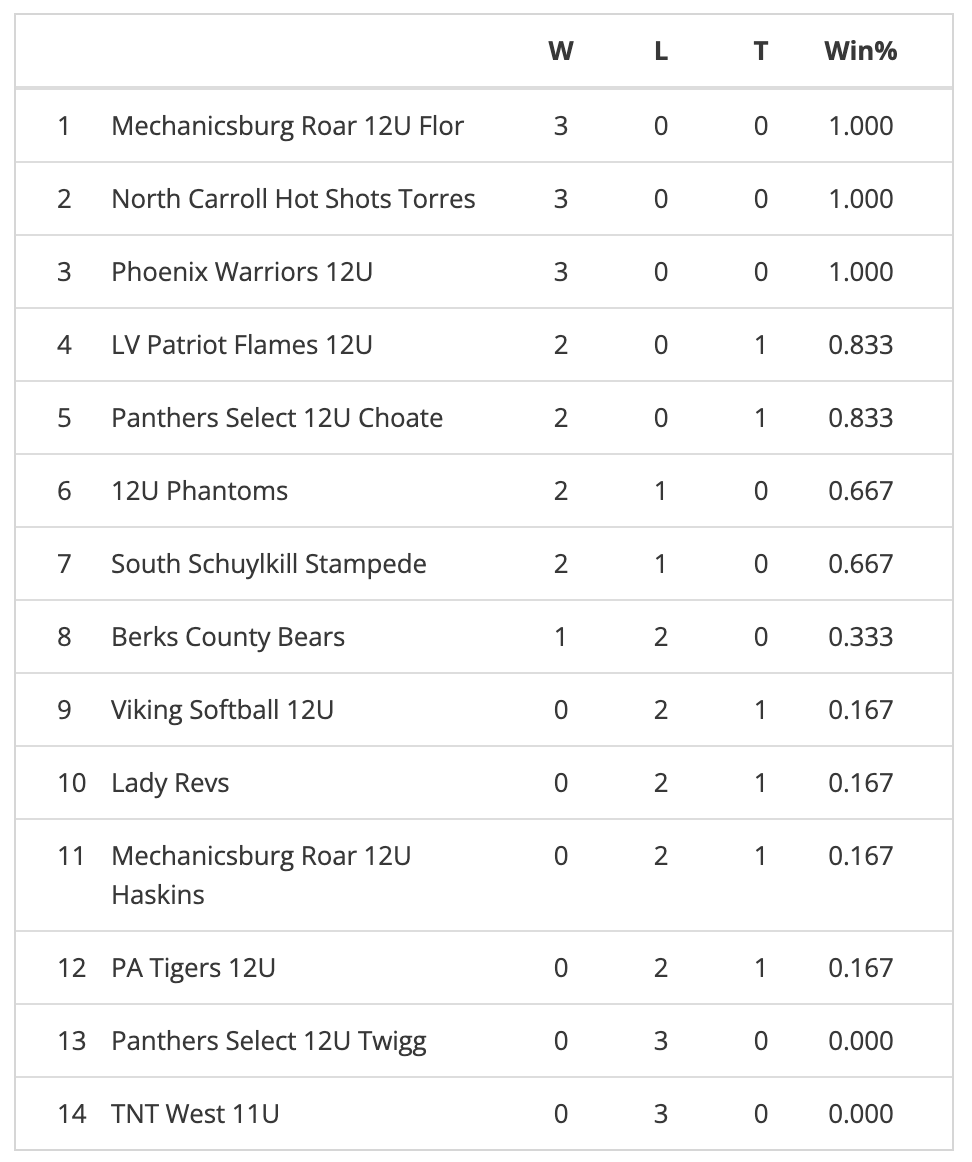 - Champion: Phoenix Warriors 12U